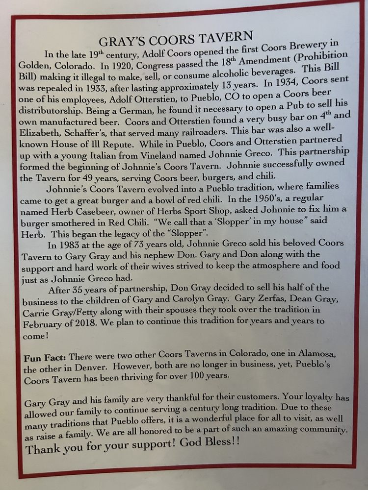 Overall, Gray's Coors Tavern is a must-visit for authentic Pueblo cuisine and a taste of local history. Whether you're craving a classic burger or looking to try something new, this iconic spot delivers delicious food and a welcoming ambiance.